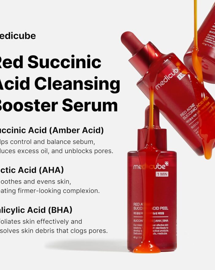 See clearer skin with Succinic, Lactic, and Salicylic Acids targeting acne and clogged pores