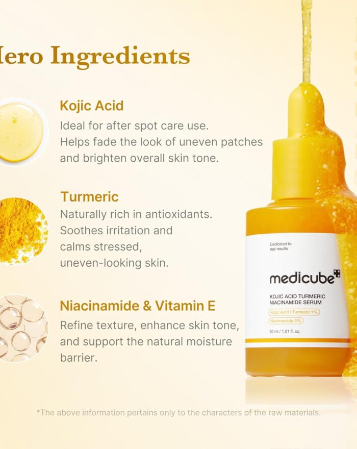 • Kojic Acid brightens uneven patches while Turmeric soothes stressed skin