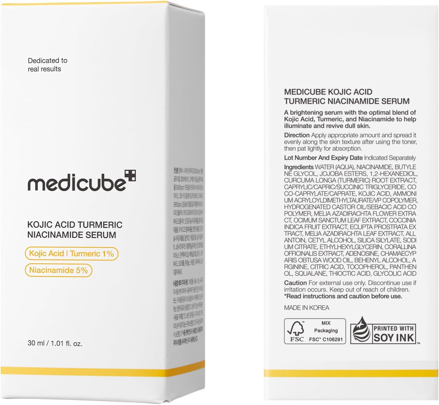 • Kojic Acid brightens uneven patches while Turmeric soothes stressed skin