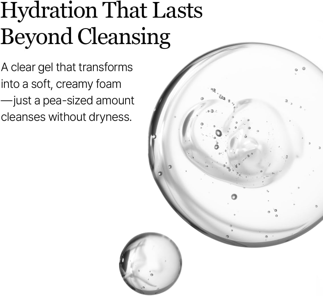 • Purifying Gel Cleanser: Soft, watery foam gently cleanses while hydrating skin
